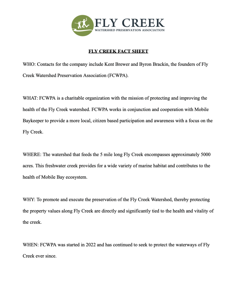 fact sheet for Fly Creek Watershed Preservation Association